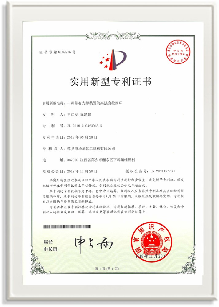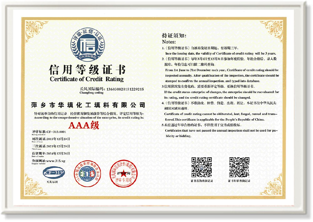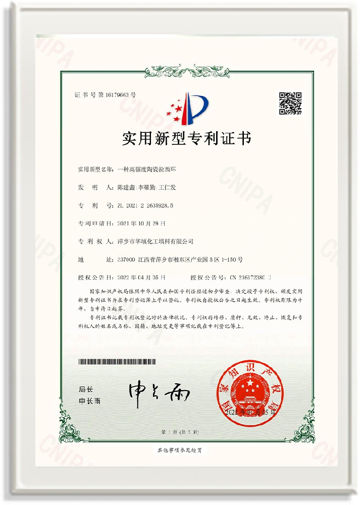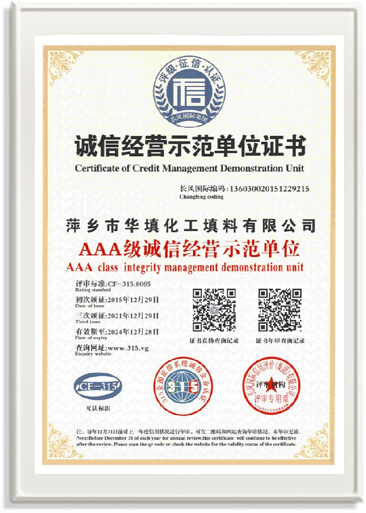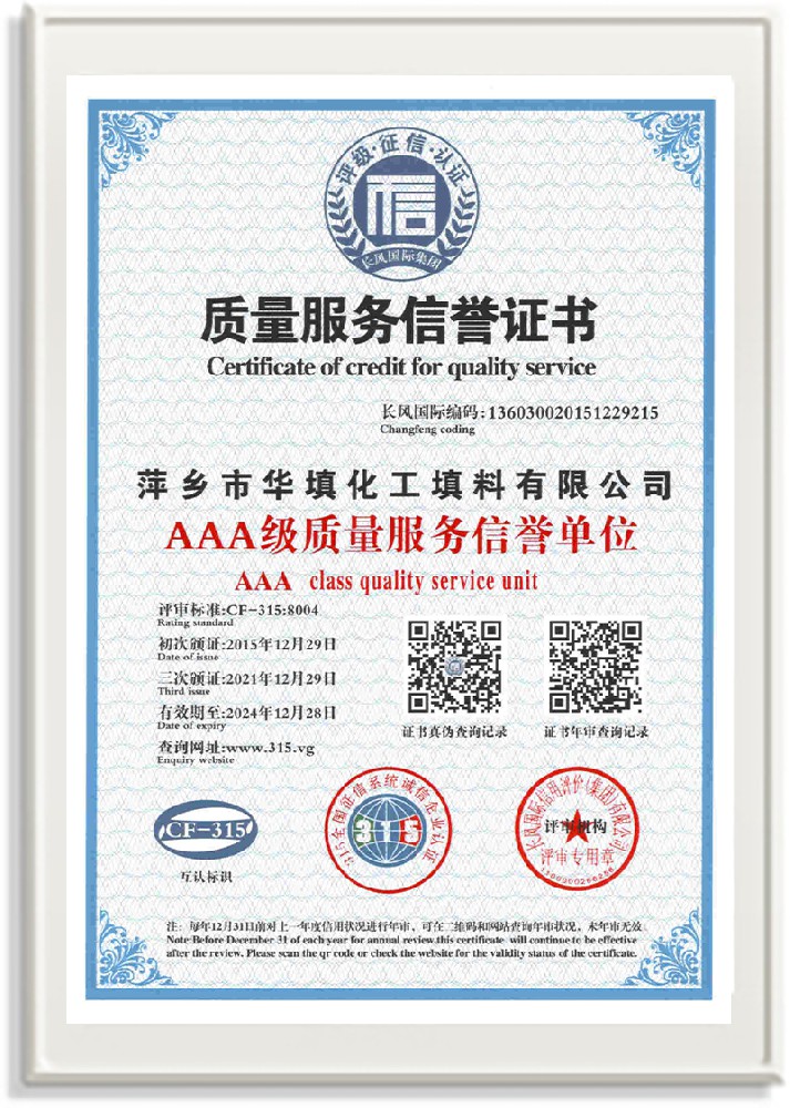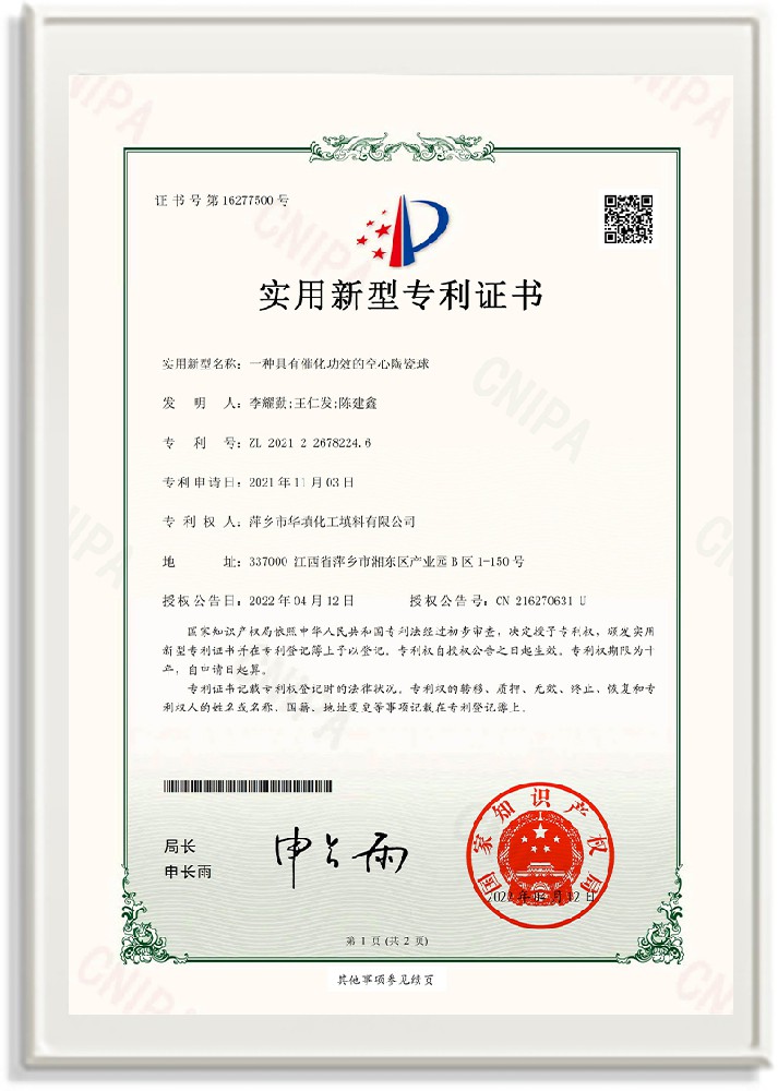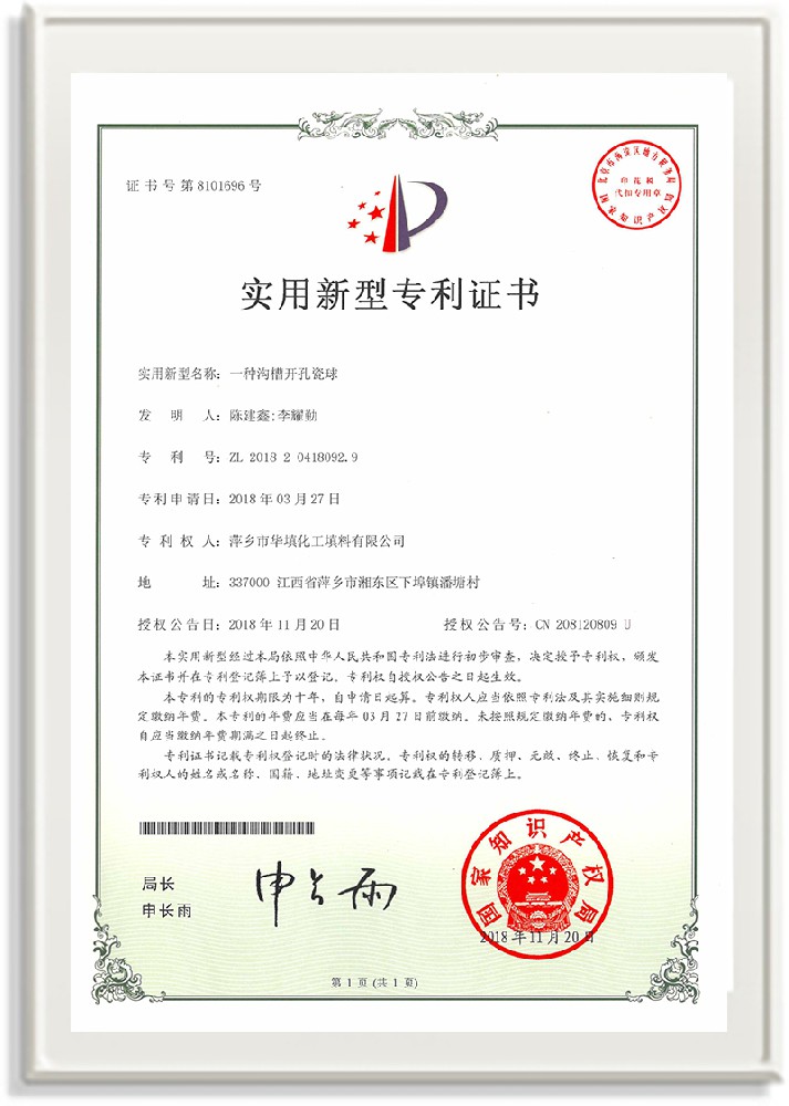 萍鄉市華填化工填料有限公司,位于320國道、109國道、浙贛鐵路、昌金高速公路貫穿其中,交通便利,是江西西部一顆燦爛明珠,創建于20世紀70年代初期,是中國石油天然氣股份有限公司“能源一号網”會員企業、中國石化物資采購電子商務網絡和中國海洋石油總公司采辦業務系統成員單位,是上海大學江西材料基因組工程産業研究院工業陶瓷産業創新聯盟基地,且通過ISO9001:2015質量管理體系、ISO14001:2015環境管理體系、ISO45001:2018職業健康安全管理體系認證的化工填料生産企業。公司擁有陶瓷、塑料、金屬填料、催化劑、活性氧化鋁、分子篩等産品生産線,現有固定資産3616萬元,占地面積3.8萬平方米。公司具有悠久的生産曆史、雄厚的技術力量和先進的生産工藝設備,可生産工業瓷球(支撐劑)、陶瓷、金屬、塑料質的規整、散堆化工填料及分子篩、催化劑、生化濾料、活性氧化鋁、石化助劑、活性炭、環保材料、耐火材料等系列的200多種規格型号産品。